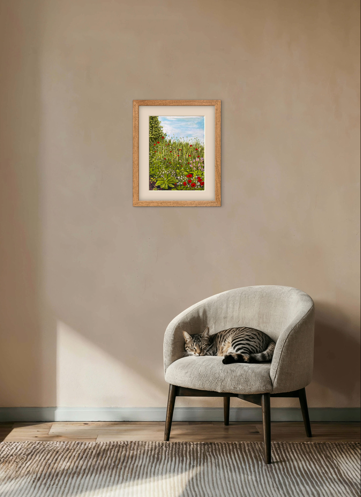 Lucca Botanic Gardens, an enchanting, cool refuge. This painting shows the pond with lilles and reflections.